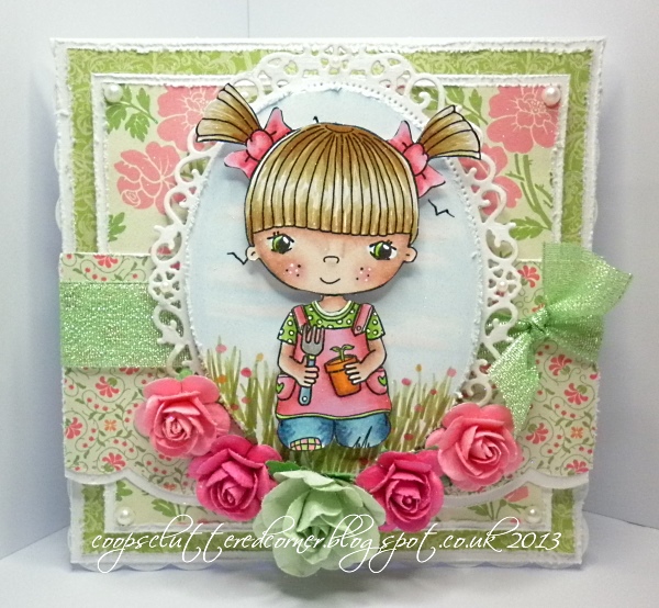 Hi! really gorgeous card,she is a sweetie Coops and love the colours/papers.Got to say you totally inspired me the other day with your pretty felt flowers,thank you Coops I had a go today for Sophie's 16th card and Ioved making them.